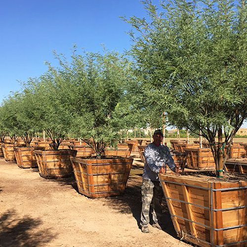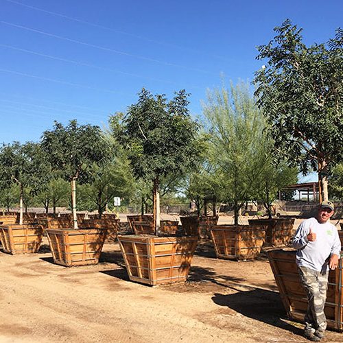 We are a wholesale nursery for the commercial trade growing drought tolerant and native landscape boxed trees that are well suited for the Sonoran Desert and other hot, dry areas of Arizona, Nevada, California, Utah, New Mexico and Texas.
